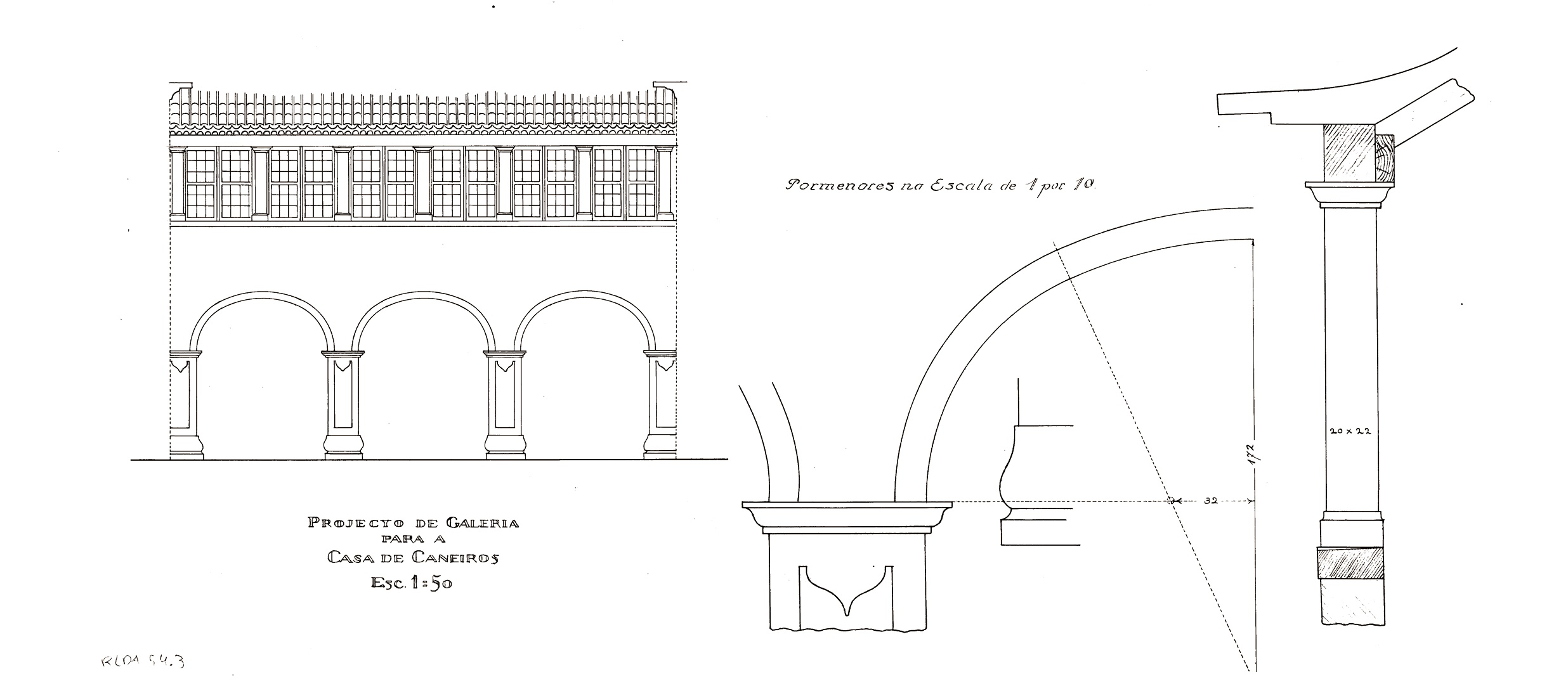 Projecto de galeria para a Casa de Caneiros, 1918 Arquitecto Raul Lino (1879-1974) Biblioteca de Arte da Fundação Calouste Gulbenkian Alçad...